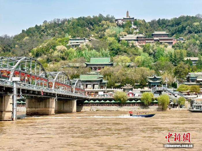 4月23日,气呼呼暖渐温的黄河兰州段迎去秋游暖潮,坐缆车、趁速艇、喂鸽子、领略羊皮筏子、趁坐黄河巴士等1系列黄河秋游名目吸收乘客。图为黄河速艇穿梭兰州中山桥。冯志军 摄
