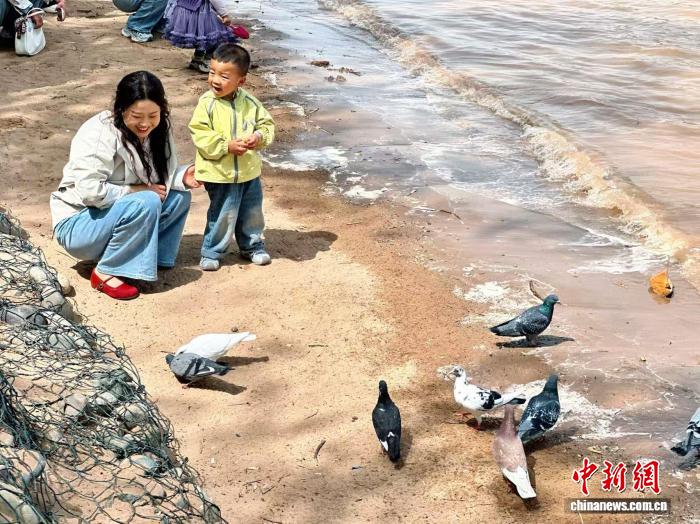 4月23日,气呼呼暖渐温的黄河兰州段迎去秋游冷潮,坐缆车、趁速艇、喂鸽子、领会羊皮筏子、趁坐黄河巴士等1系列黄河秋游名目吸收乘客。图为旅客正在黄河边玩耍。冯志军 摄